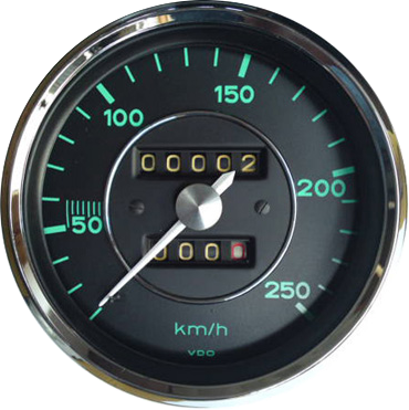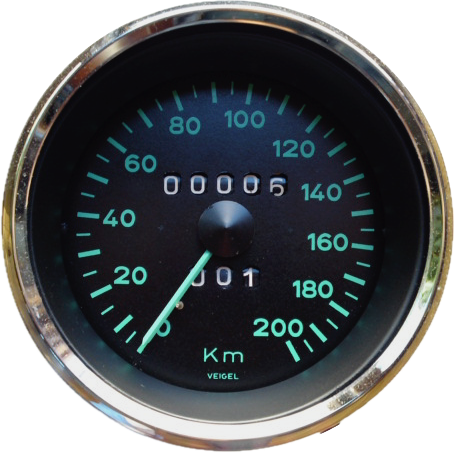 Bei den Tachos gab es während der Bauzeit des 356 drei wesentliche Änderungen. Beim Vor-A Modell wurde Tacho bis ca. Bj. 53 von Fa. Veigel hergestellt, danach nur noch von VDO. Bei den Vor-A Modellen sitzt das Zifferblatt ca. 25 mm hinter dem Glas, welches bei Veigel-Tachos nach innen gewölbt war. Ab dem A-Modell hatte das Zifferblatt in der Mitte den Chromring und einen Tages-Km-Zähler mit Zehntelanzeige. Der bis dahin mittige Anschluss für die Tachowelle wanderte mit dem T-6 Modell an den hinteren Gehäuserand und ging im schrägen Winkel ab. Diese Tachos haben auch ein anderes Zifferblatt, bei dem die Anzeige bei 20 km/h beginnt statt wie bisher bei Null. Es sitzt nun deutlich näher hinter dem Glas.