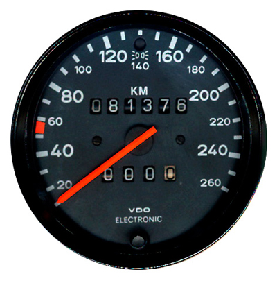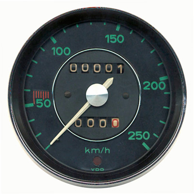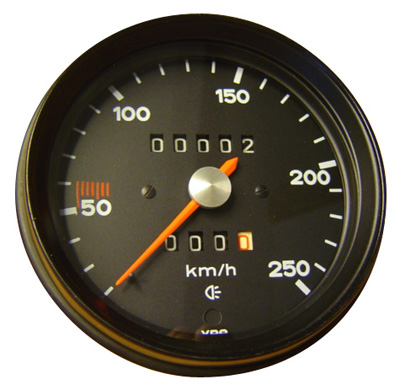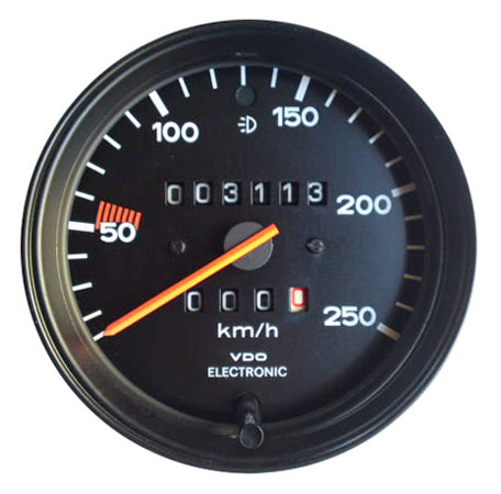 Im 911 kamen bis 1974 mechanische Tachometer mit Tachowelle zum Einsatz. Teilweise auch noch in den ersten G-Modellen. Diese wurden dann durch elektronische Tachos abgelöst. Bis zum F- Modell hatten die Zeiger noch den klassischen ALU-Knopf in der Mitte, später dann den Kunststoffzeiger.